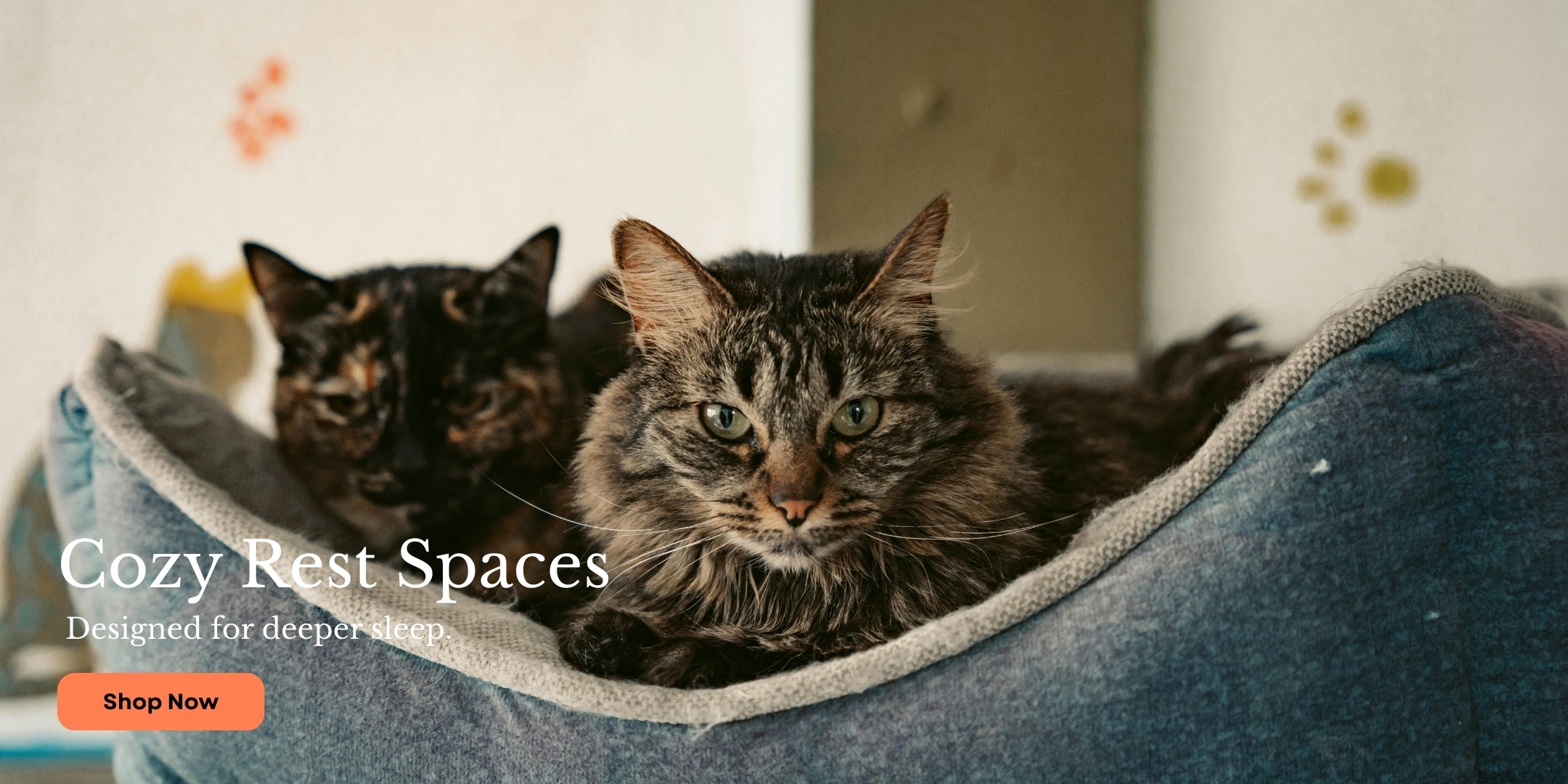 - Cozy beds, soft blankets and engaging toys help them feel safe, stimulated and loved.